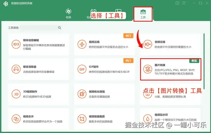 步骤1:打开数据 蛙视频转换器后,选择【工具】,点击其下列版图中的【图片转换】工具。