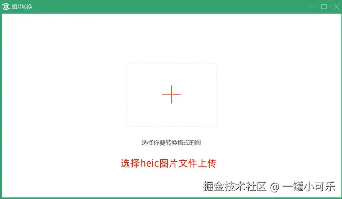 步骤2:点击【+】,打开本地文件夹,选择heic图片文件上传,或直接添加从本体文件夹中一键拖拽文件上传。