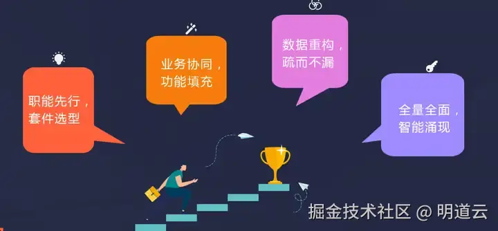 - 职能先行,套件选型:各职能部门按自身需求选如 CRM、ERP、MES 等套件解决业务数字化问题。