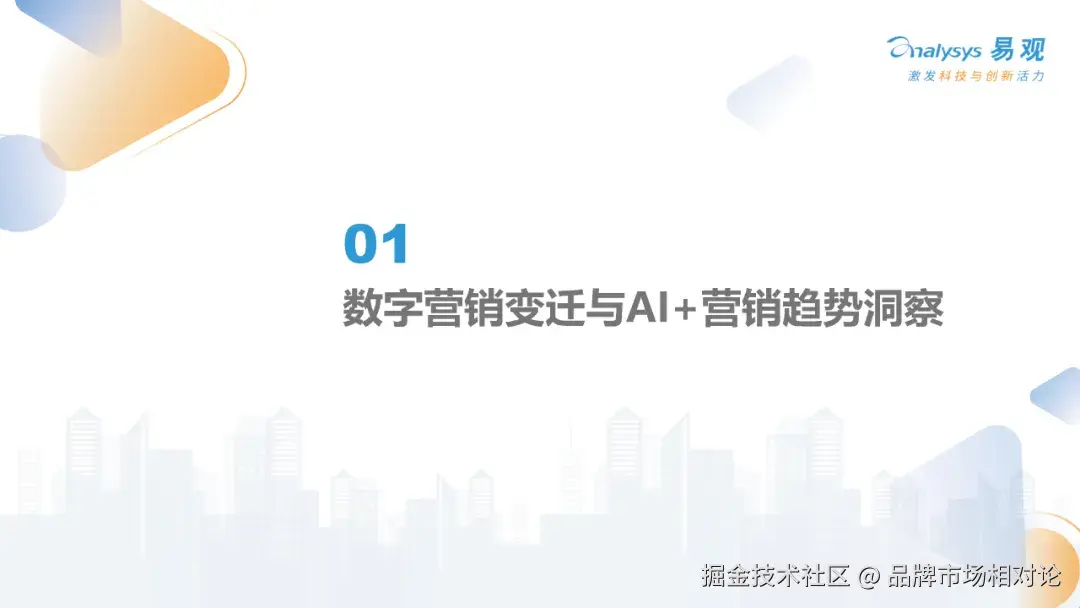随着人工智能技术的迅猛进步,数字营销行业正经历着一次革命性的转型,易观分析发布的《中国AI+营销趋势洞察与企业落地建议》报告,深入剖析了AI如何重塑数字营销生态,并为企业提供了关于AI+营销的具体实践指南。笔者带大家解读一下这份报告,希望能够帮助大家在数字营销3.0时代中抓住机遇,迎接挑战,激发科技创新活力。