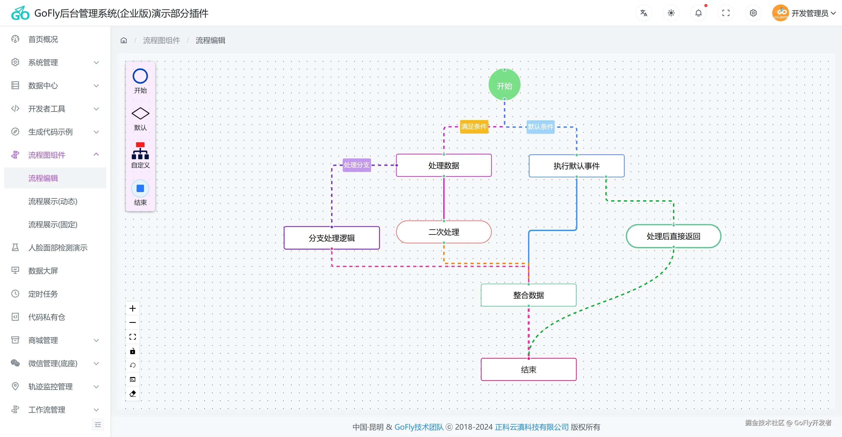 为大家在开发流程相关业务时有个漂亮流程图展示,我们集成一个实用的流程图编辑器,让流程开发变得简单,简单编辑就可以展示漂亮的流程。也可以用来做个业务流程审批,这个大家在开发时可以根据相应业务需求开发。我们基于轻量级的 Vue 3 组件库集成这也方便开发时灵活实现我们大业务。反之重度集成的组件库在某些业务上并不太适合,有的地方我们仅需要展示一下流程图,我们不希望把一个很大的包引进来,影响性能,故此我们提倡轻量的,给大家更多自由,简而不单的组件。