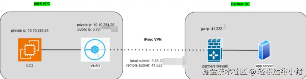 前段时间对接的两家第三方合作伙伴,都要求需要一个唯一的公共 IP 作为网关 IP,但也需要另一个公共 IP 作为加密域。 连接伙伴不允许在其隧道定义中使用任何私有 IP。