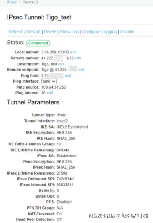 配置如果没什么问题的话,应该可以看到 tunnel 状态是 Connected(如上图)。