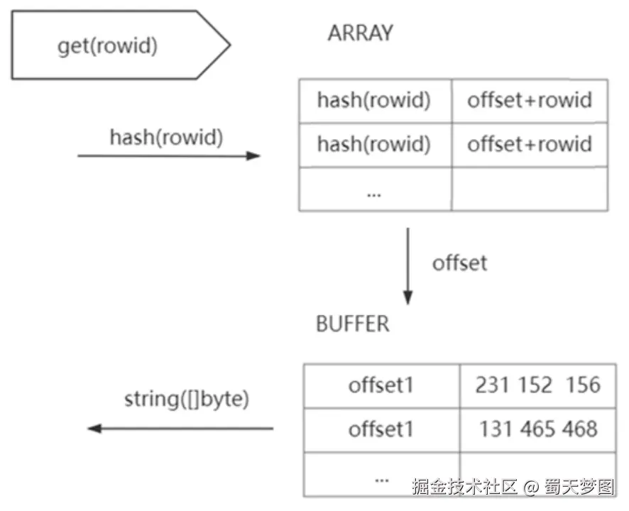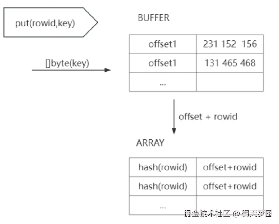 在导出过程中,首先查询每个标签下的数据量,然后据此为每个标签创建相应的缓存空间。当开始导出特定标签的数据时,获取相应的缓存空间,然后将每个数据项中 ROWID 和 KEY 的建立映射关系写入缓存空间。