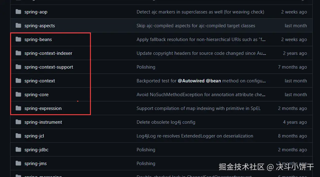 - spring-beans:提供对 bean 的创建、配置和管理等功能的支持,包括控制反转和依赖注入。