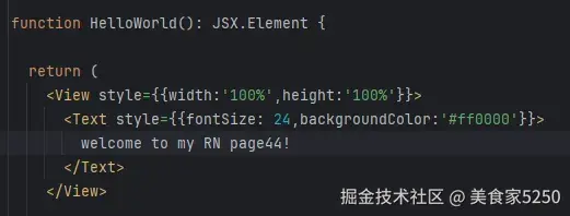 我这里有一段最简单的JS代码,只有一个View和一个Text,具体代码如下: