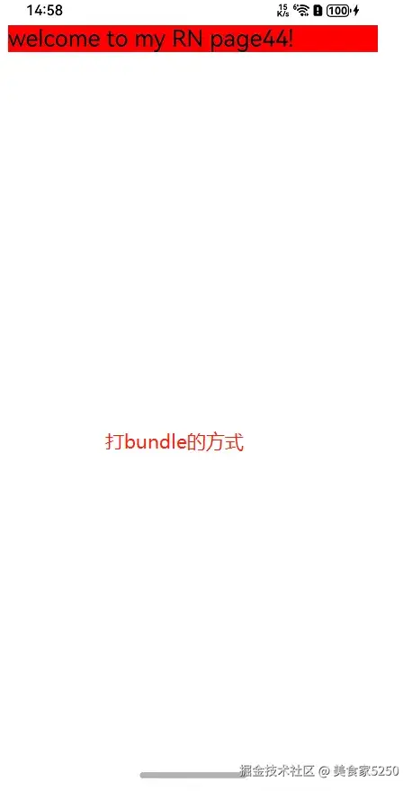这个效果和我预想中的结果是OK的,接下来咱们换一种运行方式,使用npm run start的方式打开RN服务端,然后使用metro的方式加载这个bundle包。意外出现了,结果如下图: