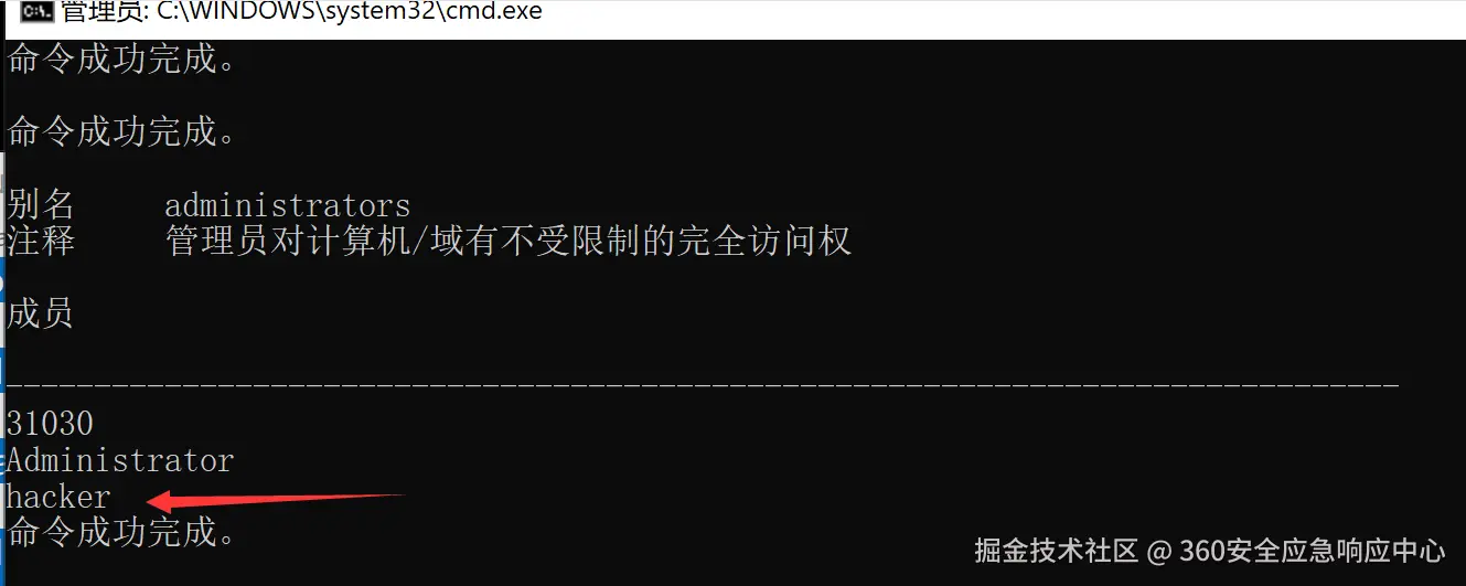 编译完成后把netapi32.dll放到C:\Windows\Temp目录下,system用户卸载 Git for Windows 程序,会发现恶意dll被执行,成功向管理员组添加一个用户hacker