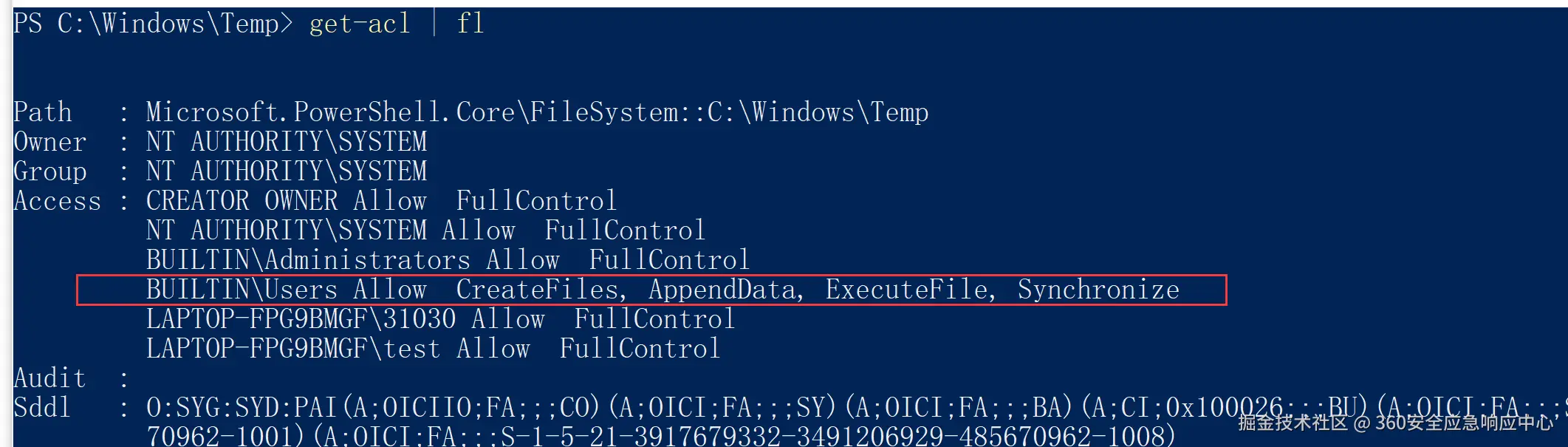 Windows系统中,某些目录或文件的权限设置不当,导致攻击者能够在这些目录下植入恶意文件或执行文件。由于这些目录缺乏有效的访问控制和安全审查,攻击者可以利用漏洞修改、替换或注入文件,甚至劫持系统中的合法进程或服务。