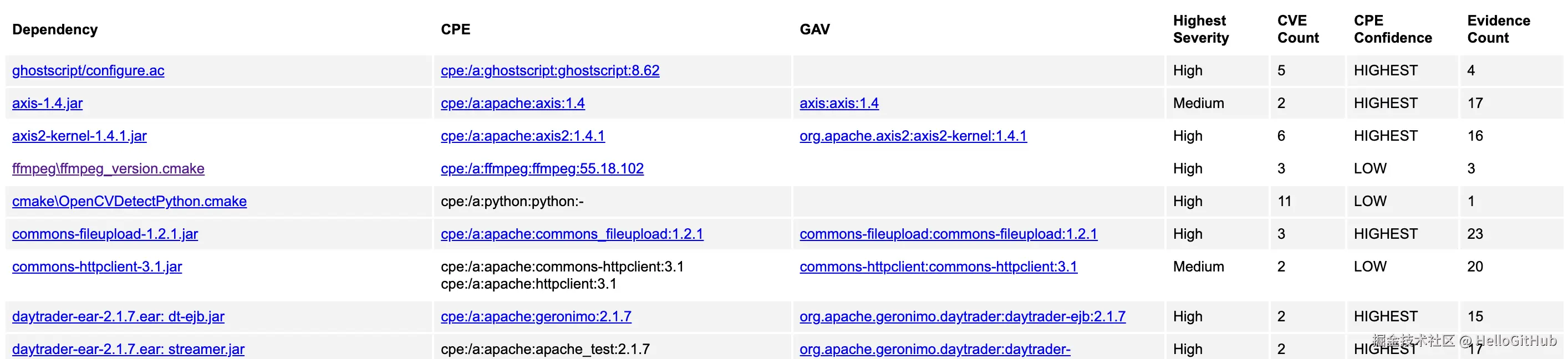 该项目是用 Java 编写的软件成分分析(SCA)工具,可用于识别和报告项目依赖中的安全漏洞。它利用通用枚举平台(CPE)标识符,来识别项目依赖库中的已知漏洞,从而生成详细的安全报告,并链接至相关的 CVE 条目,支持多种编程语言和框架的依赖项分析,还可以无缝集成到现有的构建流程中。