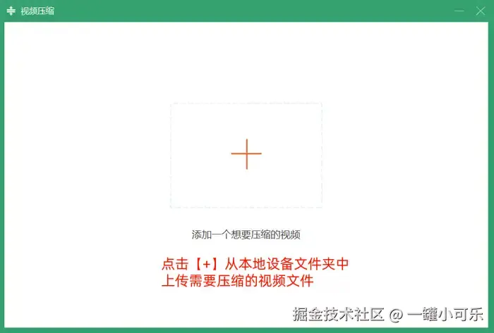 步骤2:点击跳转界面上的【+】,从本地设备文件夹中上传需要压缩的视频文件;用户也可以直接将视频从文件夹中拖拽上传。