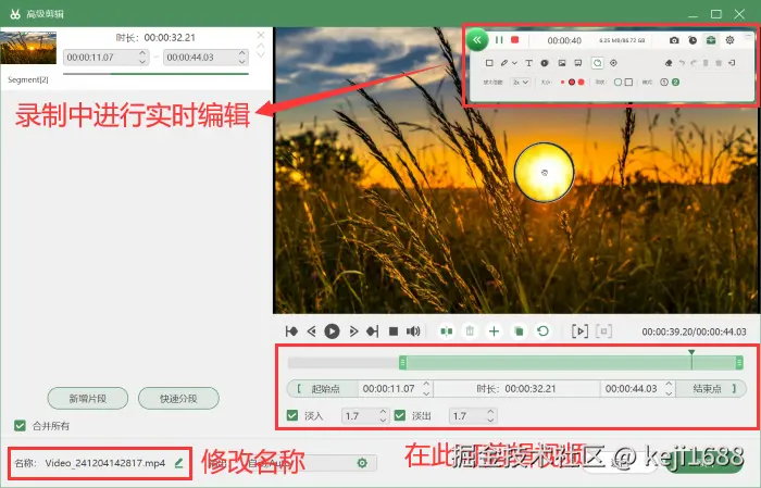 步骤2:录制的过程中和录制完成后,我们都可以对视频进行编辑,让你的录屏作品更加完美。