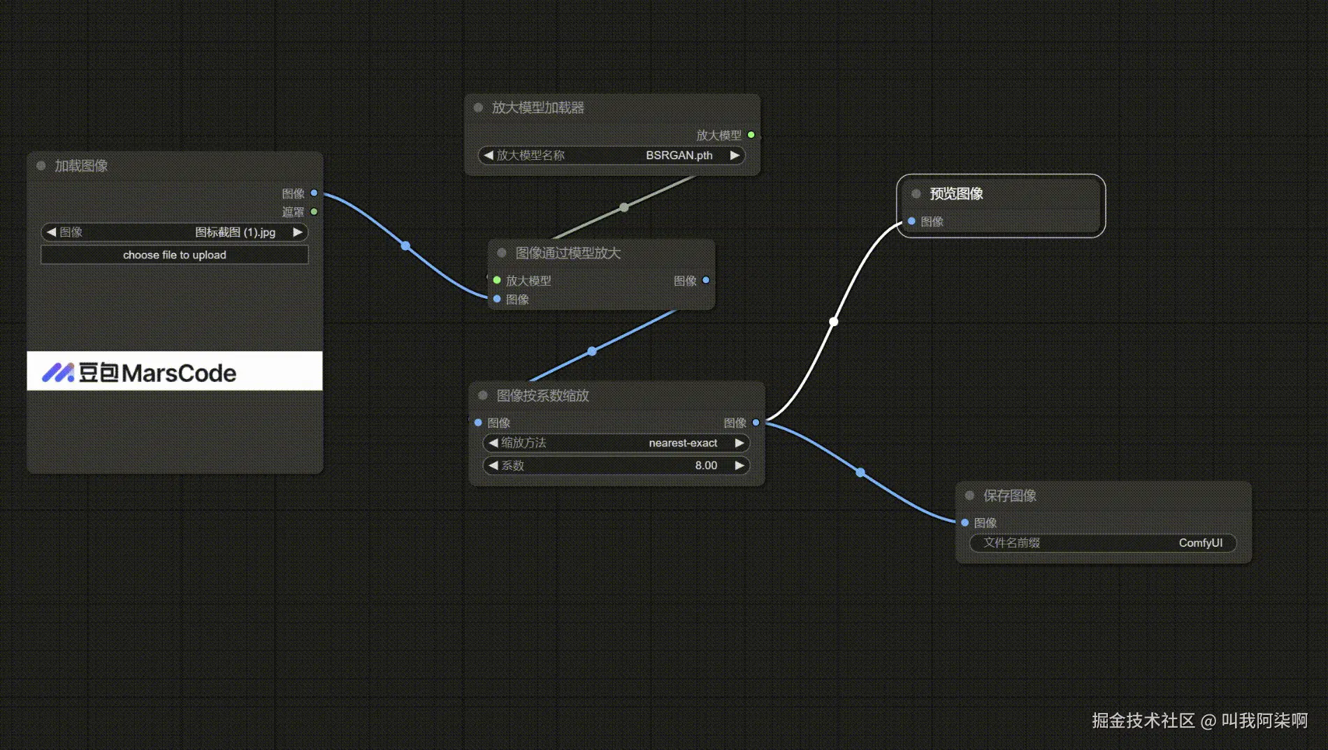 这个工作流创建之后,只需要在第一个节点更换图片,还可以复用工作流放大其他图片。