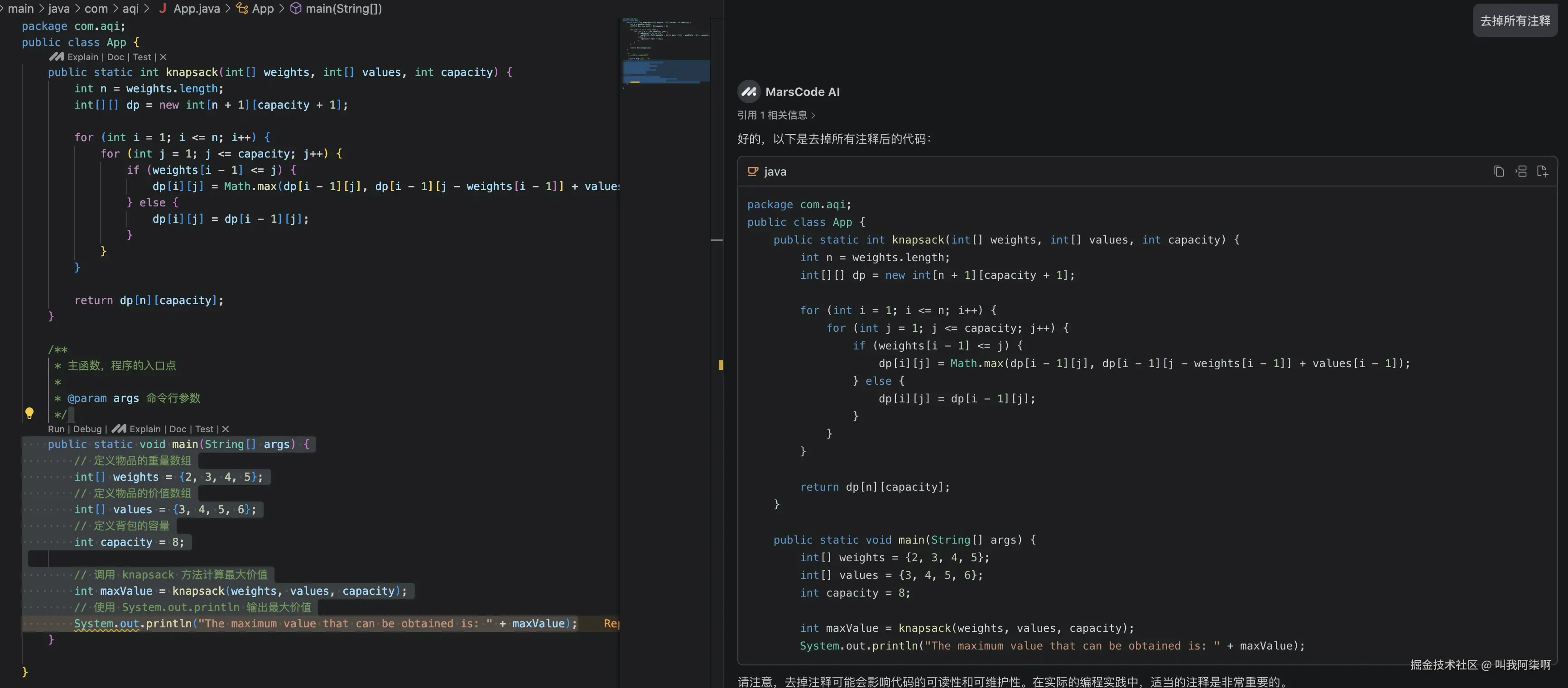 来个反向思维,为了贯彻落实防御性编码方针,看看marscode能不能把代码中的注释都去掉。