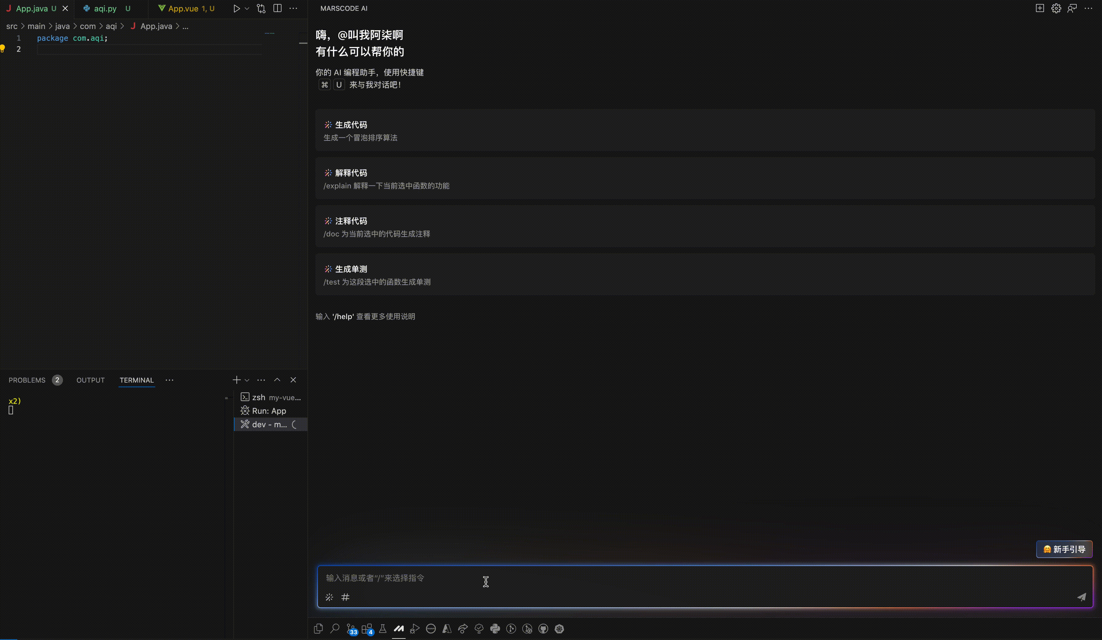 对于Java来说,开发者经常需要编写复杂的业务逻辑和算法。MarsCode 可以通过简短的描述生成完整的代码实现。例如:常见算法实现:通过输入 "实现一个二分查找算法",MarsCode 可以快速生成标准的二分查找代码。