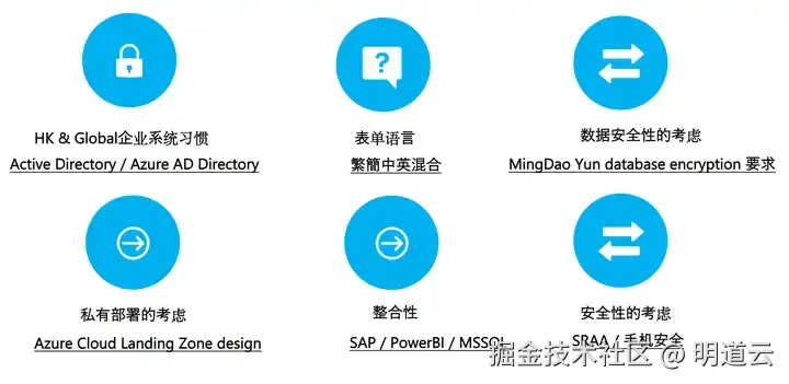 - 实施重点:同样先解决 AD 问题实现统一登录;处理表达语言差异;使用MingDao Yun database encryption企业版解决其加密等问题;将系统部署在Azure Cloud Landing Zone design;完成与 SAP、PowerBI 整合及数据仓库整合,并进行 SRAA。