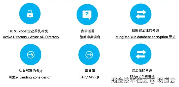 - 实施重点:与明道云技术人员协作,先搞定身份安全(AD)部分,因香港客户多需与微软 365 整合;解决繁体、简体中文与英文混合表达问题;处理 数据安全问题进行升级;将系统部署在阿里云时考虑安全性;完成 SAP 与微软数据库整合;部署时进行安全风险评估(SRAA)。