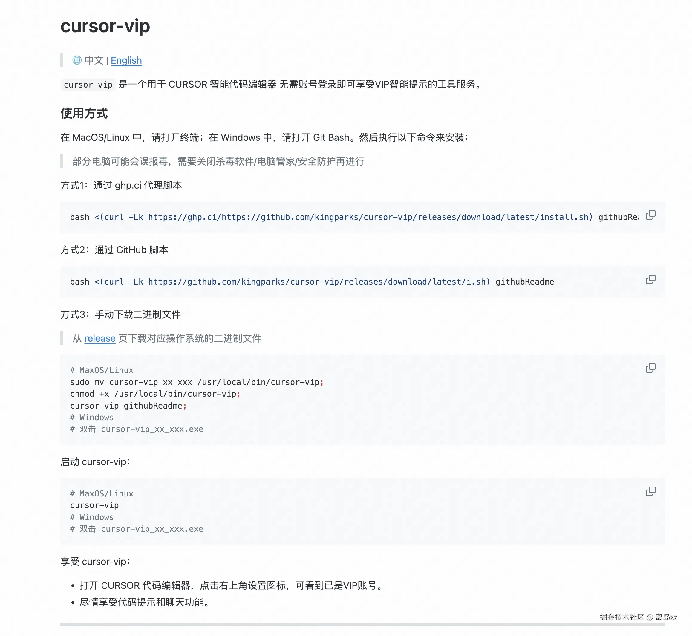 cursor无限使用!cursor免费获得pro账号! 近日cursor很火,大家可以到cursro官网[Cursor - The AI Code Editor]查看并下载工具进行使用。 原来可以无限账号进行试用,不过最近cursor进行了限制,我向大家推荐一个工具,也可以实现cursor的无限制使用,就是cursor-vip工具,到 该网址 ,运行对应的命令进行安装,之后运行,就可以获得免费的pro账号,一个月有500的高级模型提问次数,赶紧去使用吧!