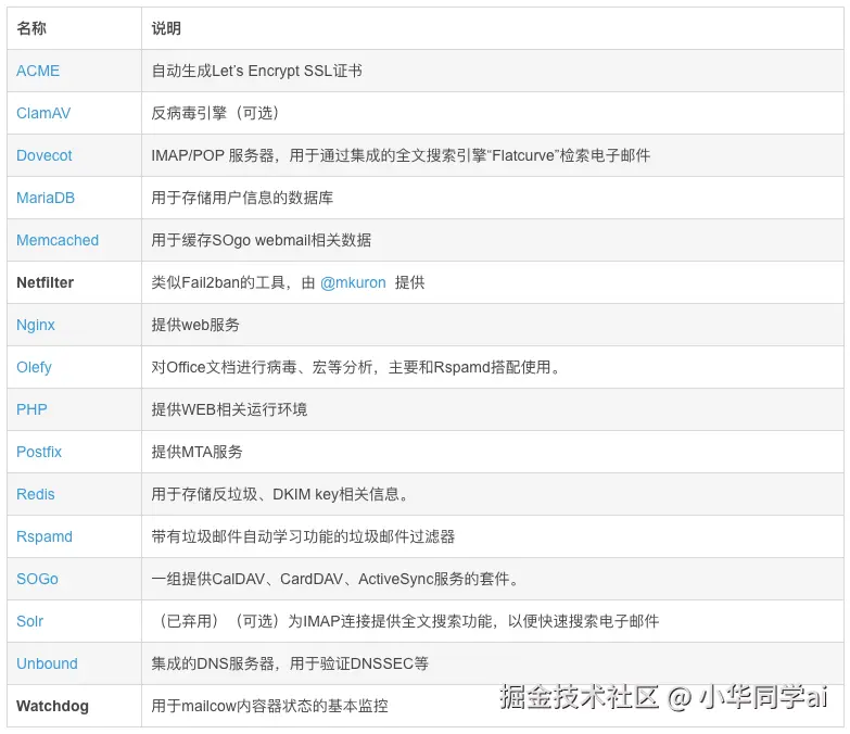 - Poste: 一个轻量级的邮件服务器,部署简单,适合个人使用。