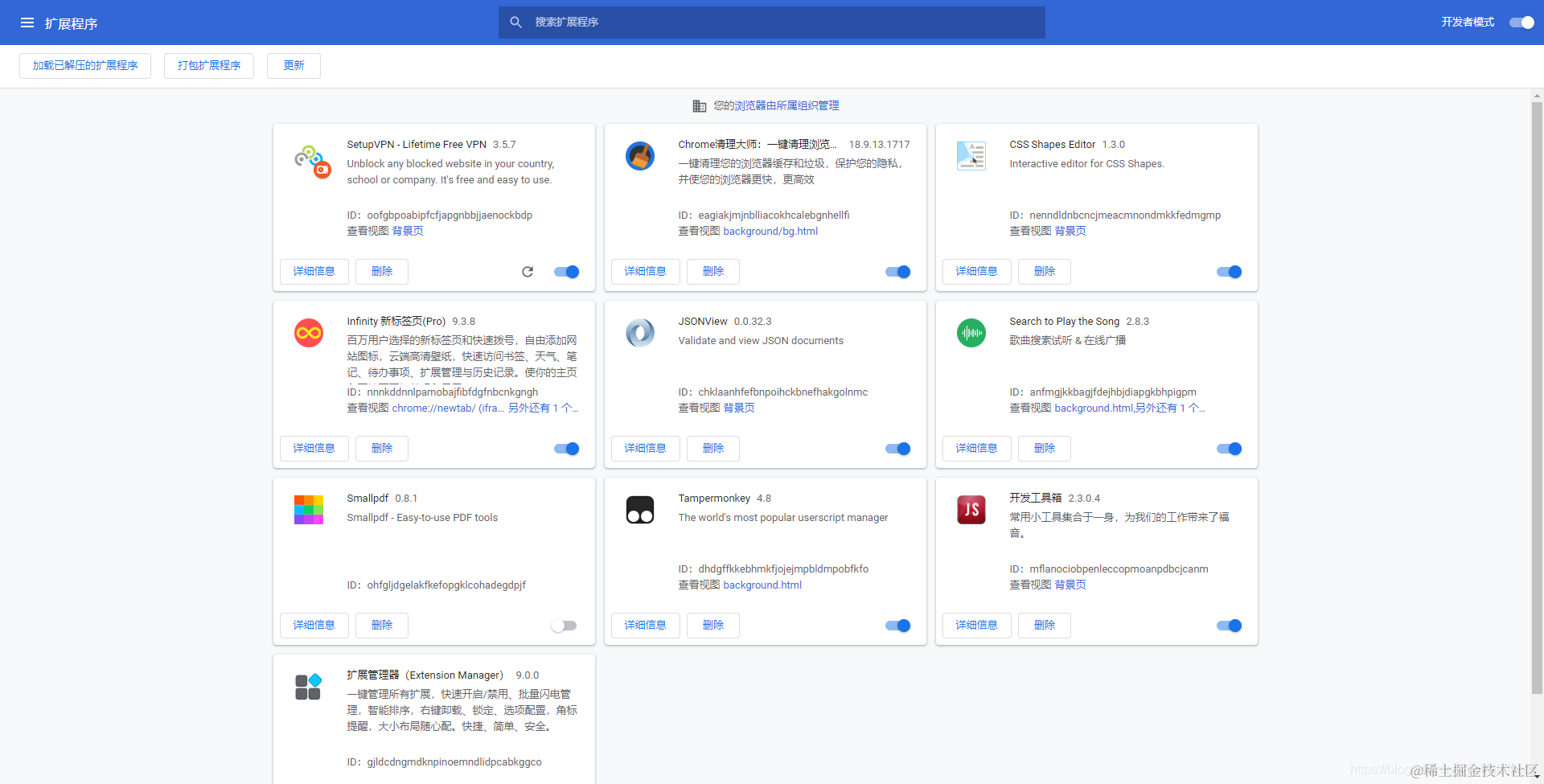 接下来我们开始下载油猴脚本。我们在Chrome浏览器中访问我们的插件列表,看看都有什么奇奇怪怪的东西: