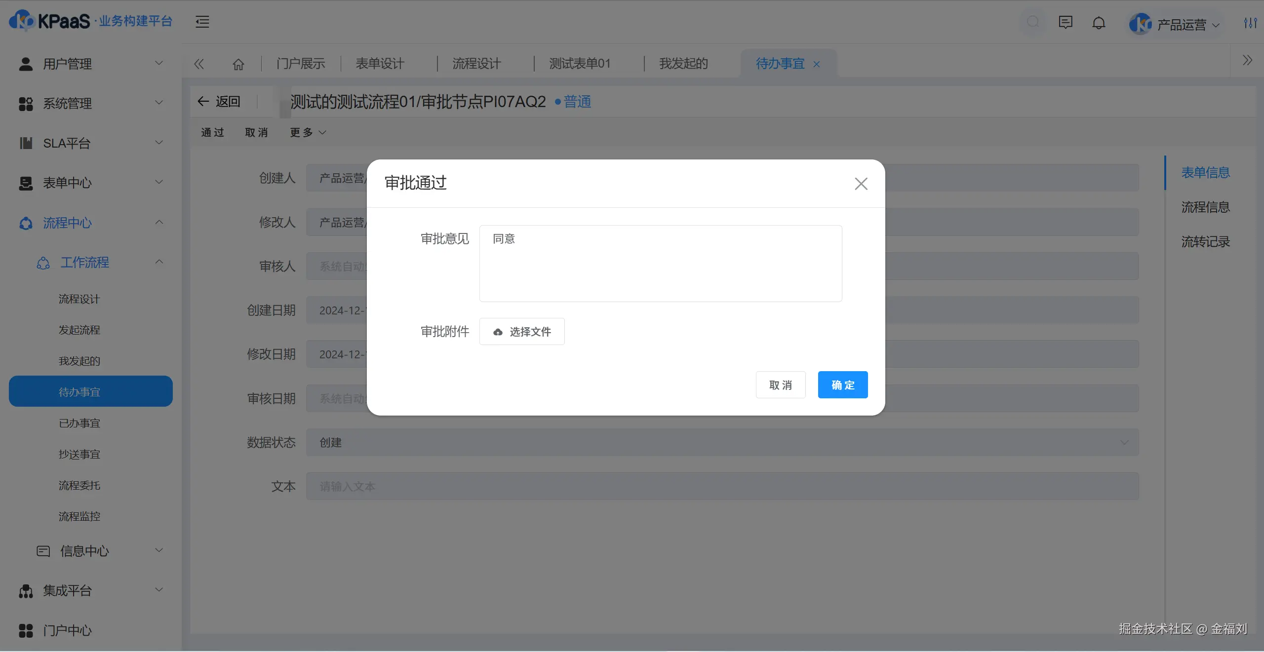 BPM,Business Process Management,中文翻译为业务流程管理,有时也被称为BPMS (Business Process Management Suite业务流程管理软件套件),是一种融合了现代管理思想和技术的重量级企业管理工具,专为解决跨系统业务流程集成而设计,能够帮助企业高效优化审批流。以KPaaS集成平台为例,展示其在审批流优化中的具体应用:
