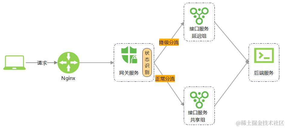 "故障"API 由高延迟节点组进行处理,"故障"API 可能会拖垮高延迟节点组,但是高延迟节点组和正常节点组是隔离的,因此不会影响系统正常运行。