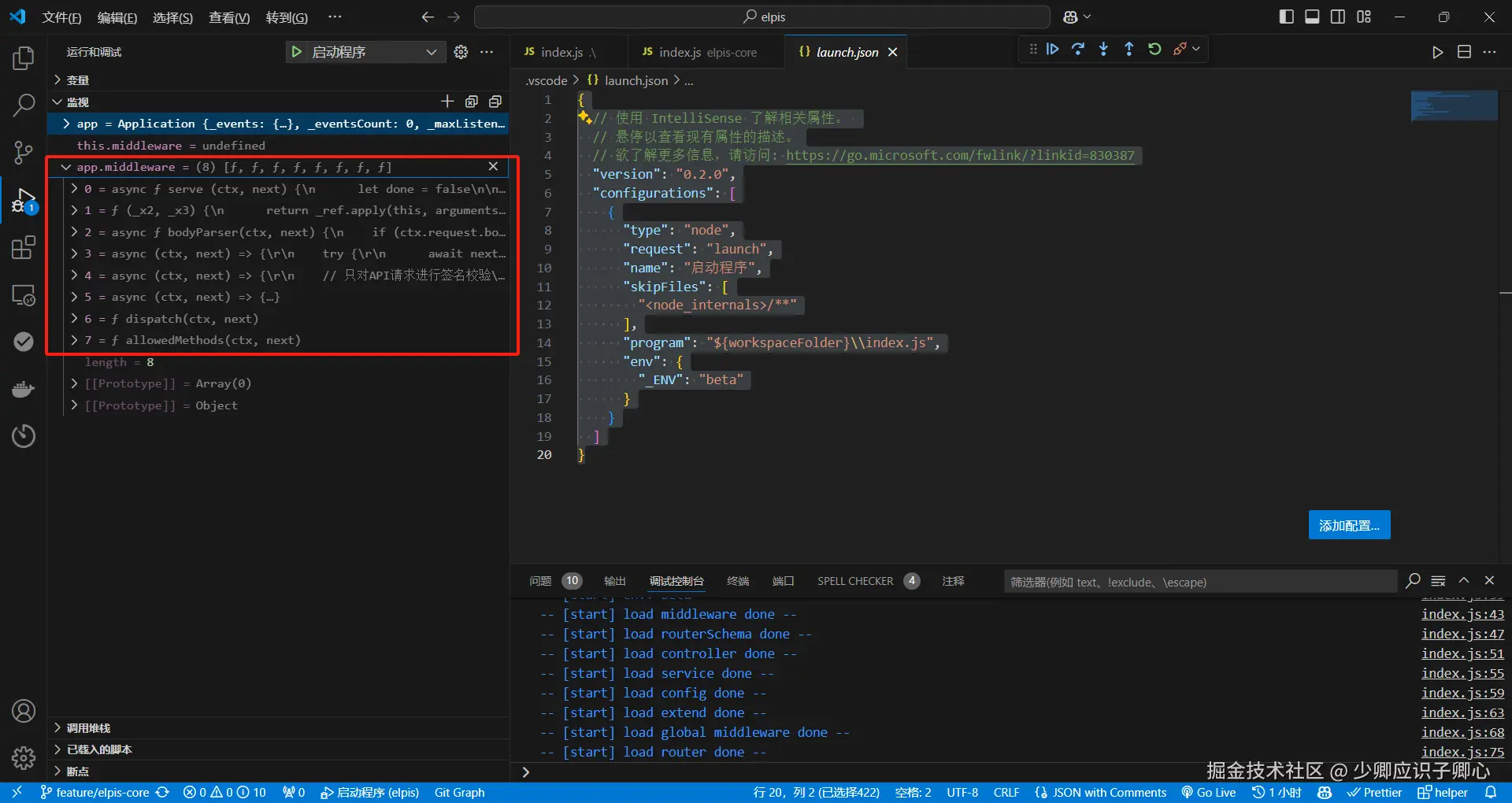 app.middleware 中可以看到被挂载到app上的中间件以及加载顺序