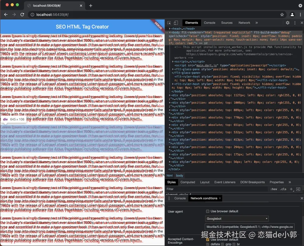 例如 seo_renderer ,其实根据 Google 的说法,只要内容相似(完整来源),就不被视为 SEO 伪装,理论上,seo_renderer 这种使用 regex 和 navigator userAgent 自动检测爬虫,并对应添加 HtmlElement 添加到 DOM 的行为,也算是一种规避的方式: