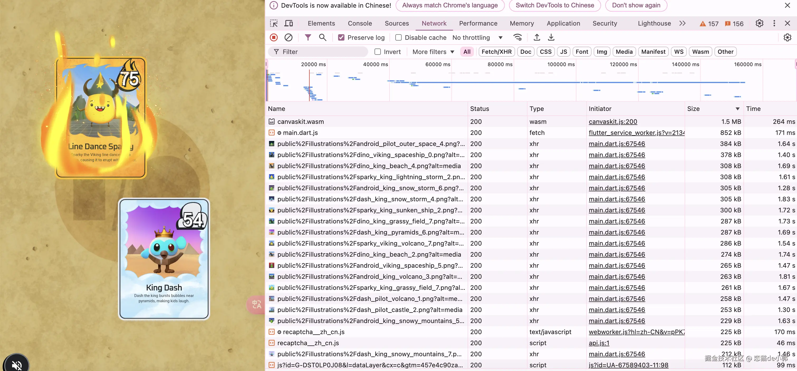 不过还是回归到 Flutter 路线上,它本身就不是为了传统 Web 场景存在,前面我们也说过 Flutter Web 的一些适用场景,另外在 2022 和 2023 年的 Google I/O 上,Flutter 也曾通过 Flutter Game 发布过两个 Flutter Web 小游戏,这也算是 Flutter Web 的场景之一:
