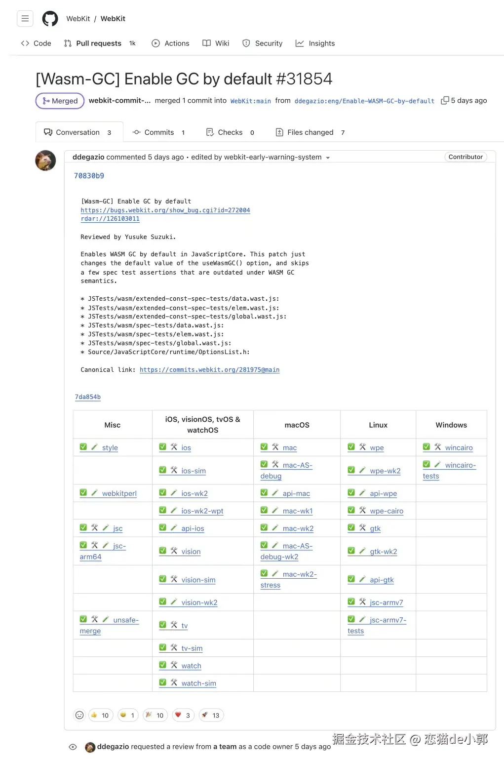 不过 WebKit 也合并了 Wasm GC 默认开启的支持,也就是未来 Webkit 默认能够支持 Wasm GC 和 Wasm Native 的场景会越来越多: