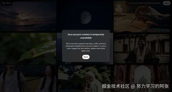 时间并没有让 Sora 热度减退,用户蜂拥而至,官方网站瞬间流量激增,直至崩溃,一度暂停注册和登录服务。