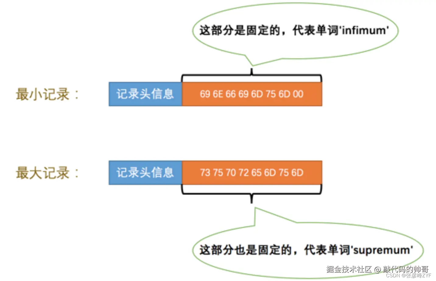 heap_no为 0,用于表示页的起始。 - Supremum 记录:最大记录,
