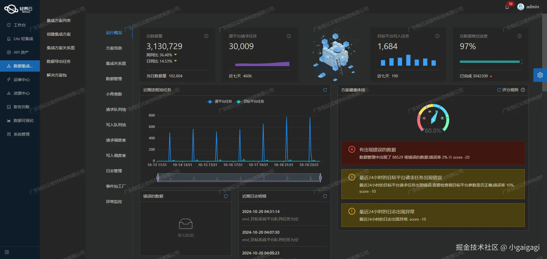 轻易云平台提供了集中的监控和告警系统,可以实时跟踪数据集成任务的状态和性能。通过统一视图和控制台,企业可以全面掌握API资产的使用情况,实现资源的高效利用和优化配置。这对于大规模的数据集成场景尤为重要,有助于提升整体业务效率。