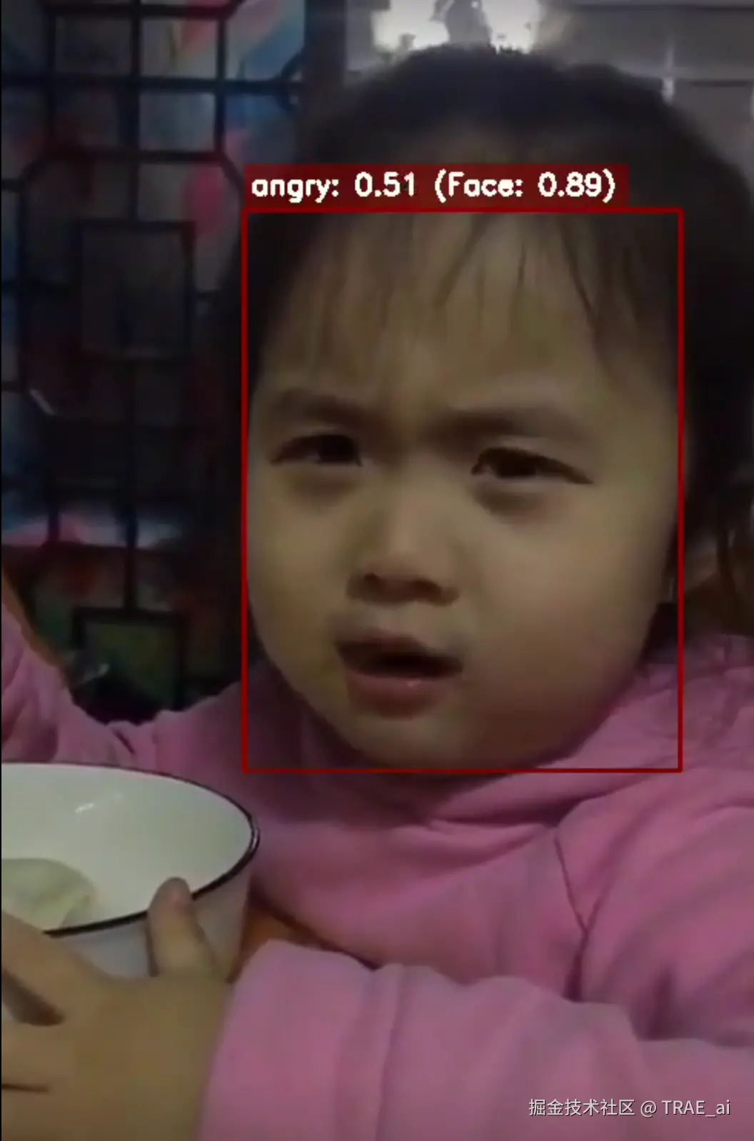 并通过带练的方式教会我们针对视频物体的识别以及利用python调用「 情绪识别模型 」实现对人物情绪的识别,获得如下图效果