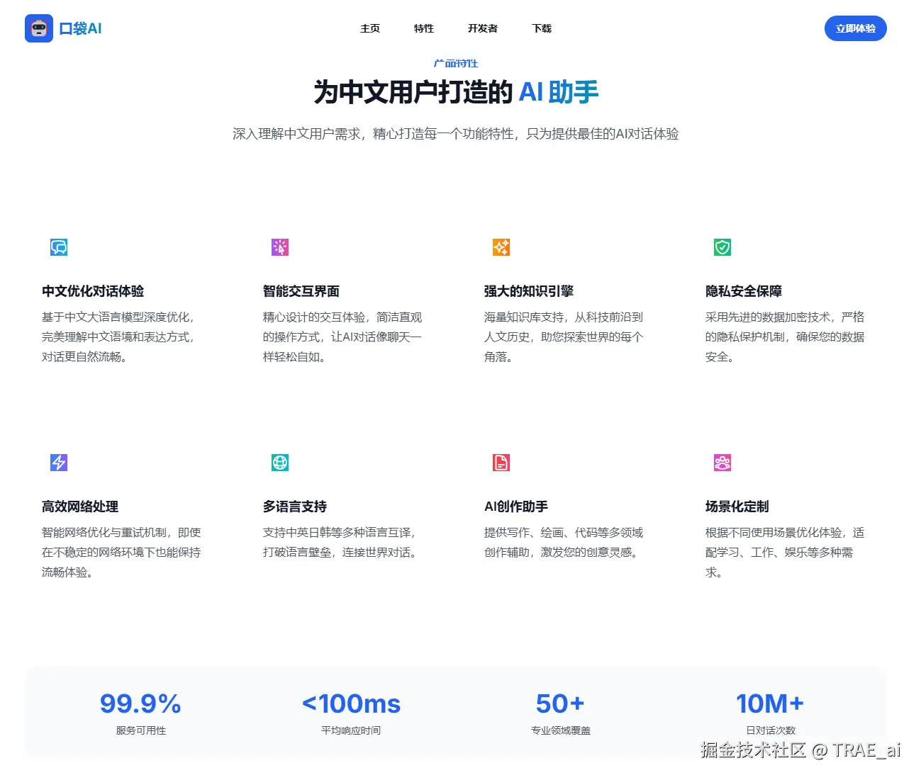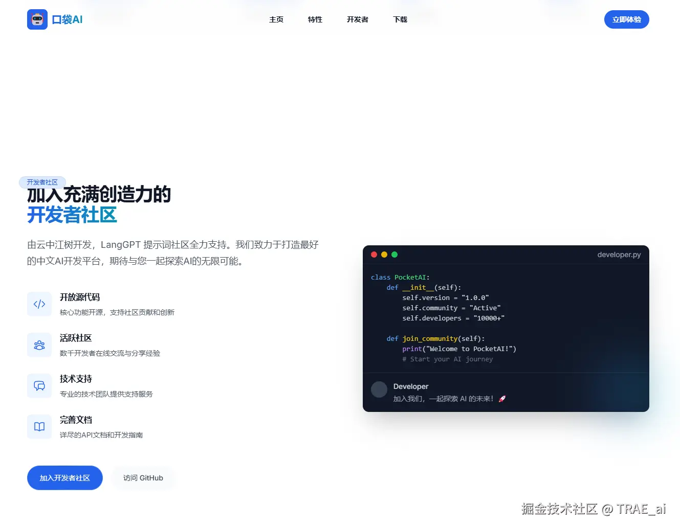 继续跟随指引你将一步一步从:「设计基础框架和hero区域」、「添加主要特性区域」、「添加开发者信息和社区背书」和「添加版本信息和下载引导」等四个步骤制作出你的专属产品页,最后部署上线获得可访问的网站。