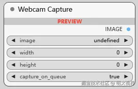 打开网络摄像头, capture_on_queue 参数控制摄像头捕获图像的时机,True 表示在节点执行时捕获,False 表示在工作流开始时捕获