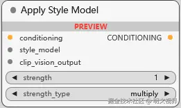 应用风格模型, 将风格模型, 输入调节, 图像特征 统一起来指导扩散模型生成特定风格. 可调节强度, 强度类型只有 multiply (多重)