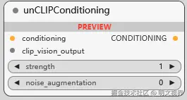 unCLIP 模型条件设置, 接收条件和 CLIP VISION 编码的图像, 可调节强度和噪声