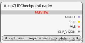 加载 unCLIP 基本模型的加载器, 这种模型架构同 DALL-E 2, 能生图, 也能对图像进行编辑 (CLIP_VISION 编码图像)