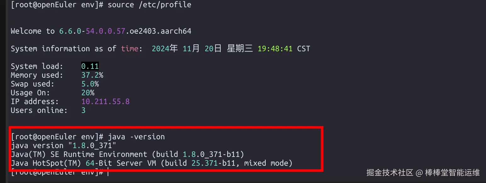 2、在OpenEuler系统中搭建Java运行环境;