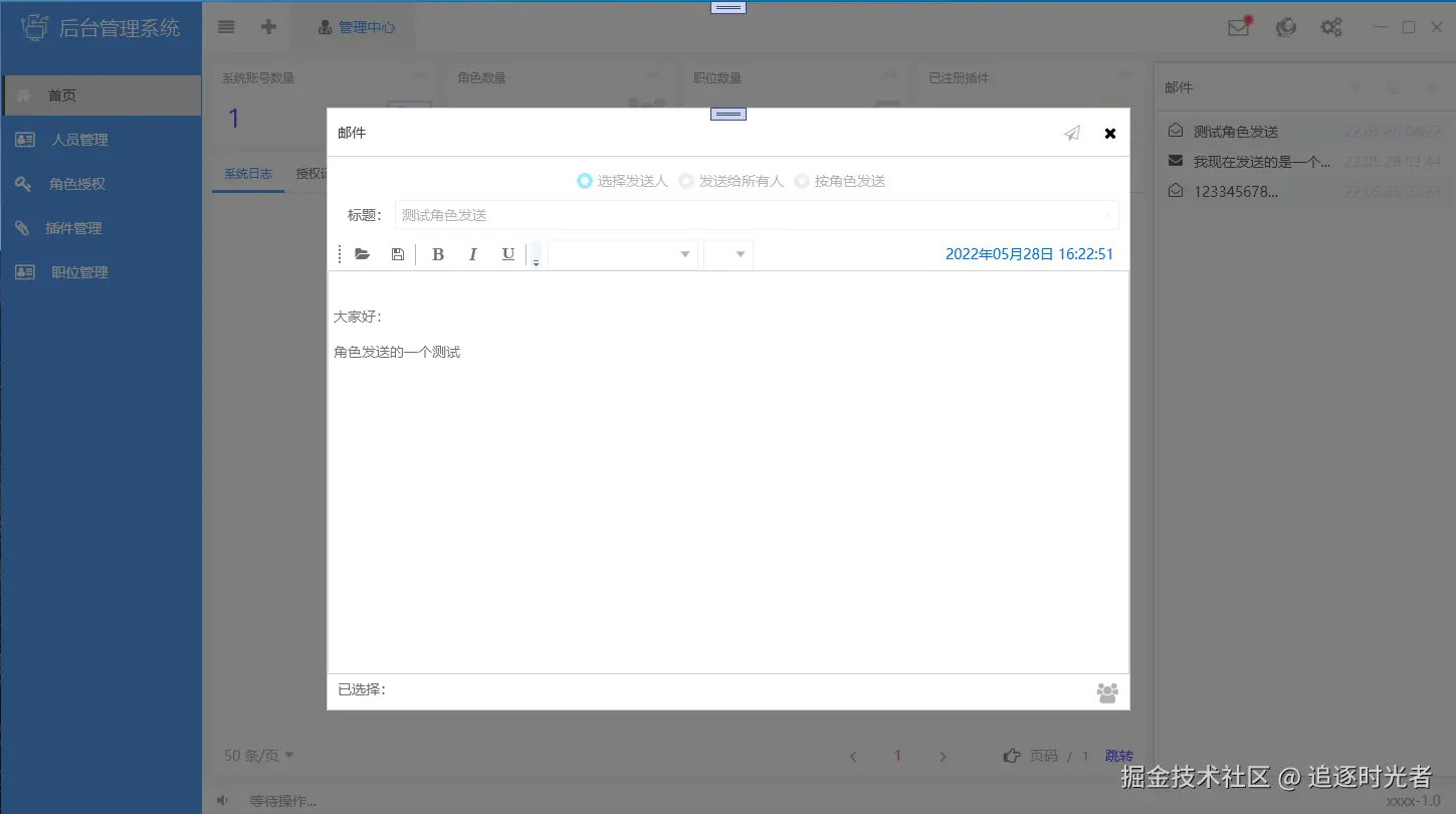 最近发现有不少小伙伴在学习 WPF,今天大姚给大家分享一个使用 WPF 开发的管理系统,该项目包含了用户登录、人员管理、角色授权、插件管理、职位管理、主页功能(邮件、皮肤、设置)等功能,对于一个 WPF 初学者而言是一个值得参考和学习的项目。