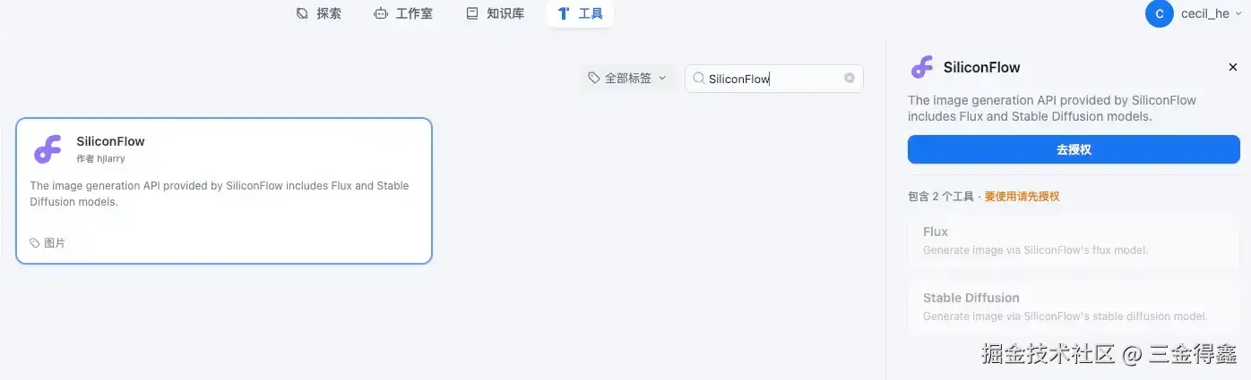 创建一个 Agent,并在其中使用 SiliconFlow 工具: