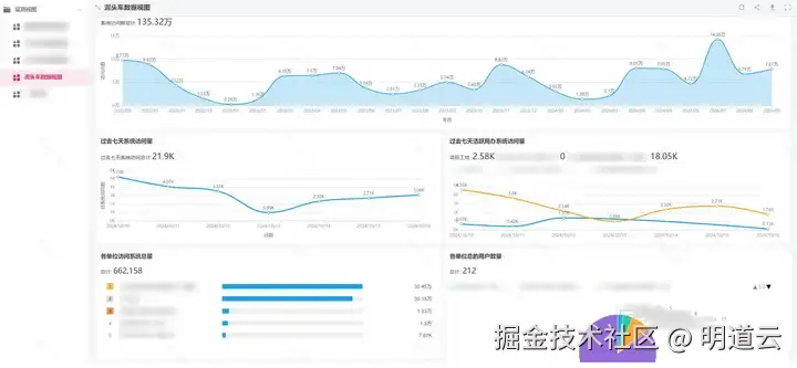 2.Westco 数据治理工具:与明道云结合良好,以泥头车数据为例,能快速分析出系统登录次数、使用最多的人员等情况,满足政府领导紧急报数需求,摆脱对第三方的依赖。