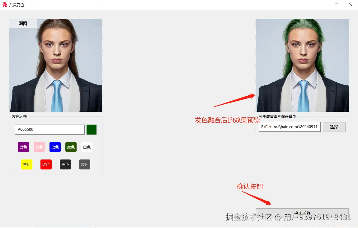 一切准备就绪后,点击右侧的确认按钮,进行AI发色融合: