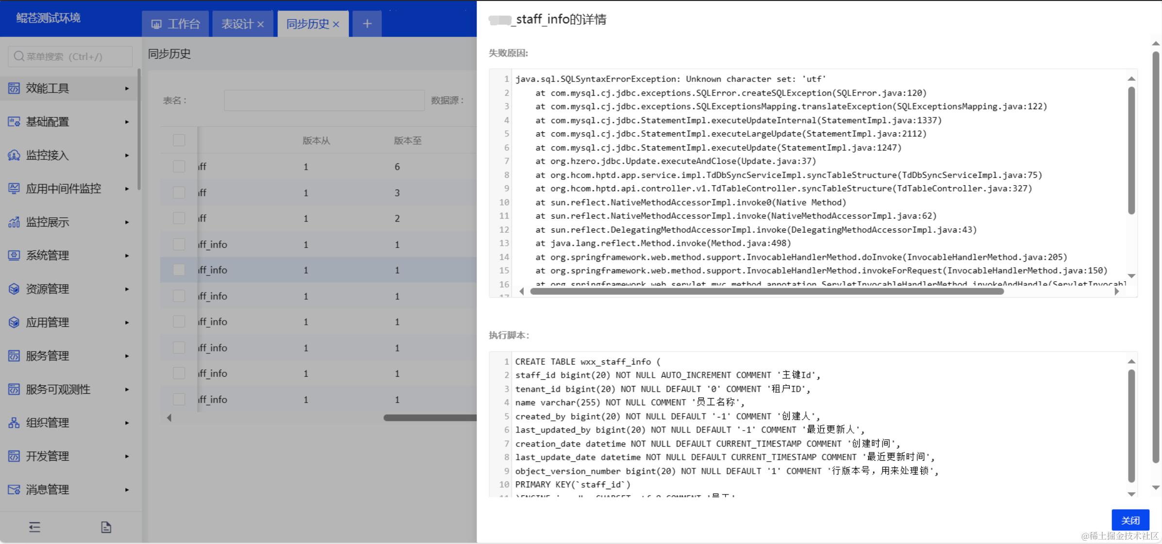 线上同步数据库后,会产生一条同步记录,可以查看每次同步执行的脚本,针对失败的同步,还可以查看失败原因。