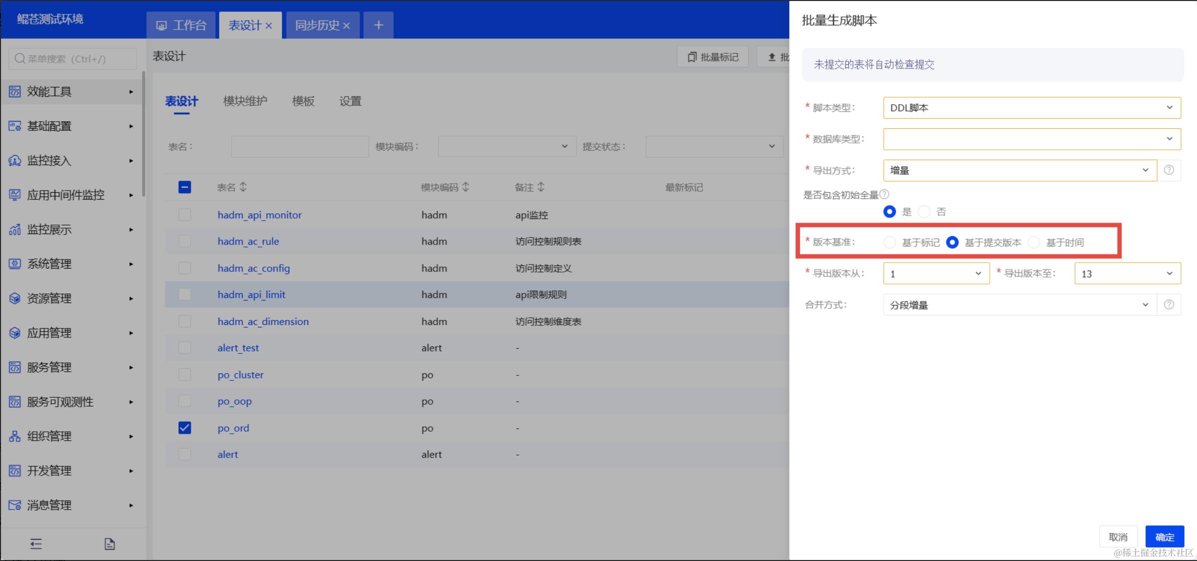 可以预览特定表的全量/增量的DDL脚本/GROOVY脚本。同时,支持如下两种模式,将表结构同步至目标数据库: