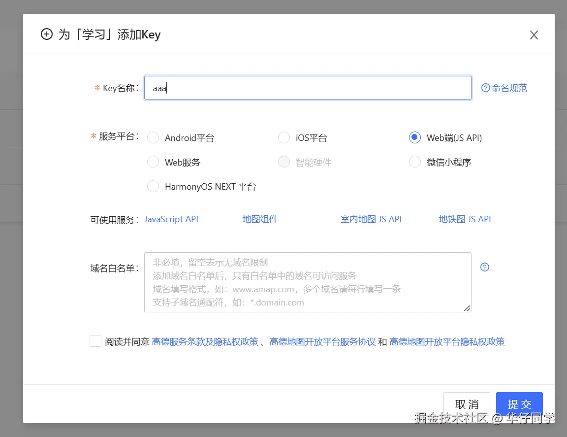 key: '你的秘钥', // 高德地图API密钥