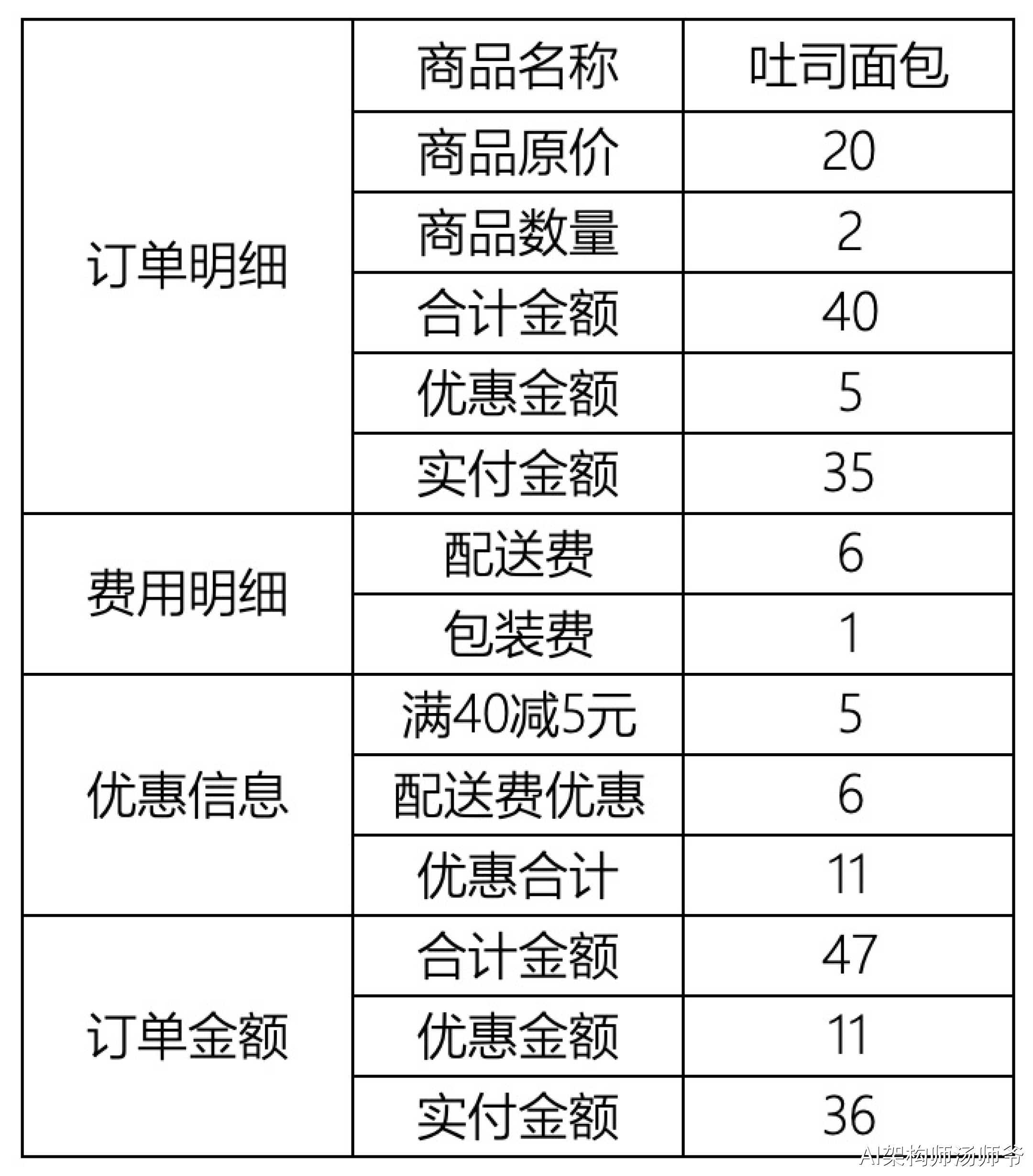另外,还需支付 1 元的包装费用,订单的各金额计算如图所示。