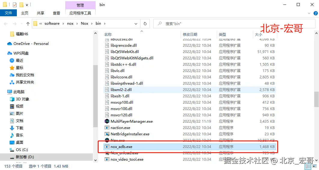 (2)查看模拟器(夜神)中adb的版本,在安装目录\Nox\bin下有个nox_adb.exe ,其实就是adb.exe。(这里便于和Android的adb做区分)