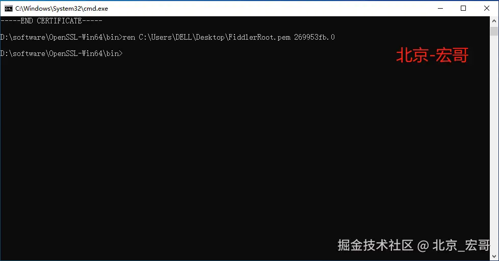 1.将Fiddler cer证书转pem证书,在cmd输入如下命令进行转换: